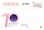 中国邮政定于2025年6月1日发行《中国科学院学部成立70周年》纪念邮资明信片1套1枚。