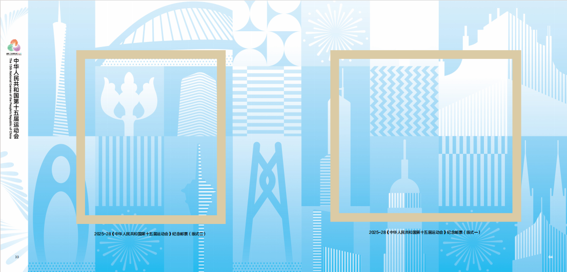 中国集邮有限公司于2025年11月9日发行《中华人民共和国第十五届运动会》整版卡书。内插新邮版式一、版式二、首日封。