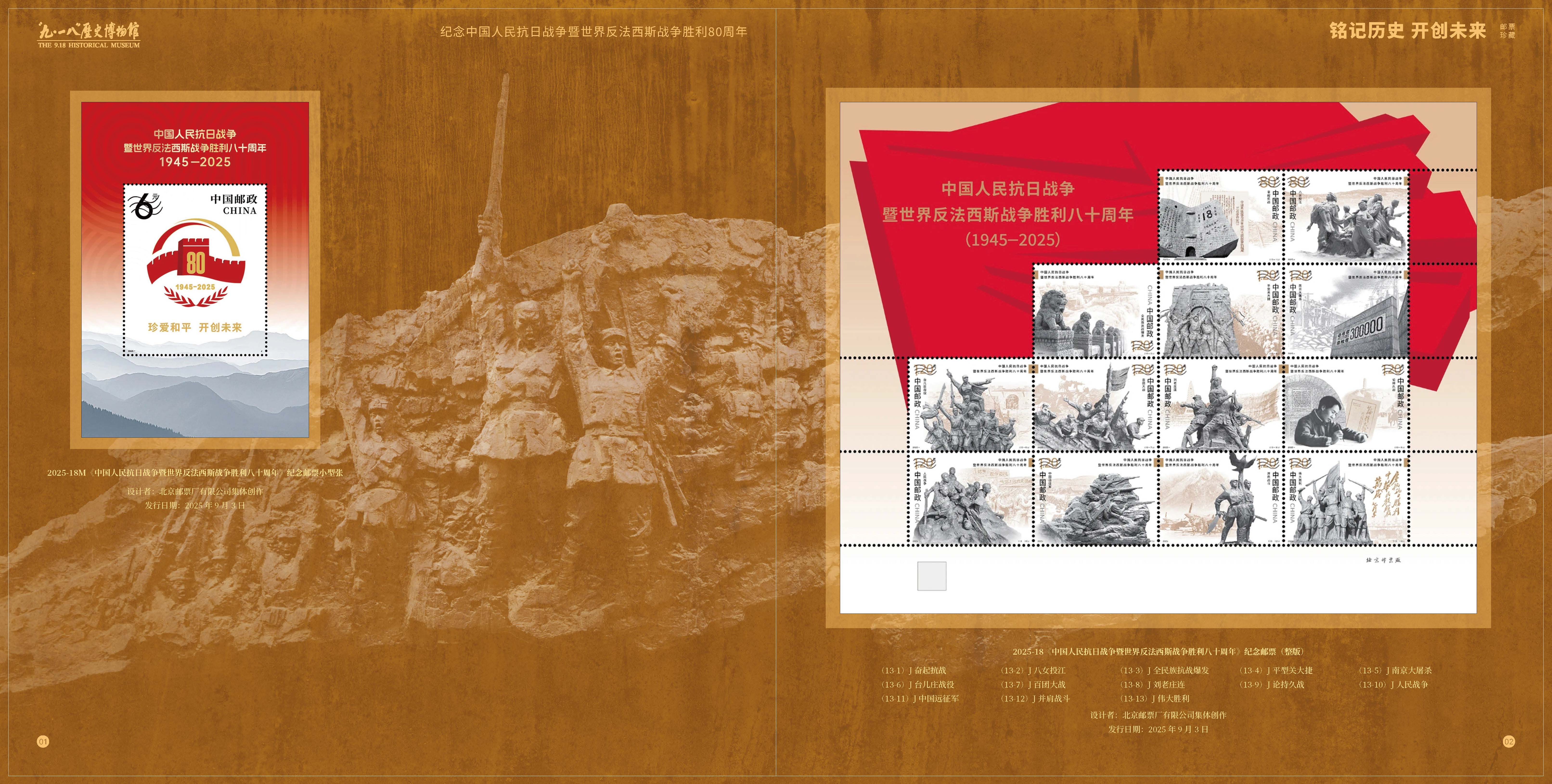 中国集邮有限公司于2025年9月18日发行《铭记历史 开创未来》邮票珍藏。