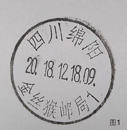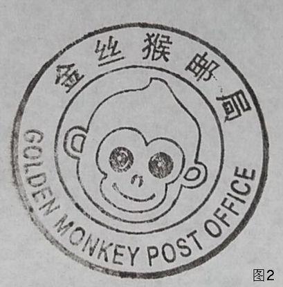 12月18日上午8点半,“纪念改革开放四十周年邮票首发暨金丝猴邮局挂牌仪式”在四川绵阳市举行。活动中,举行了“金丝猴主题邮局”的揭牌仪式;同时启用了“四川绵阳金丝猴邮局1”的邮政日戳(图1)和有金丝猴头像图案的纪念邮戳(图2)。金丝猴主题邮局还在现场推出了金丝猴画册、金丝猴丝绸封、金丝猴邮折、双宝明信片、金丝猴台历等多种集邮产品,受到了邮迷们的喜爱。