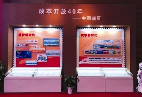 在中宣部的指导和帮助下,中国邮政以反映改革开放伟大进程的邮票为素材,精心策划了《改革开放40年——中国邮票》展览,回首光辉历程,展望美好未来。展览共分为高举旗帜、伟大实践和筑梦新时代三大部分,共使用邮票72套309枚。同时部分邮票喷绘到5面展墙上进行展示。