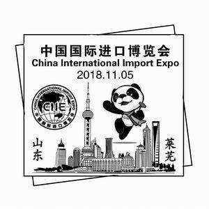 为配合邮票发行,山东济南、莱芜、聊城、德州邮政分公司各推出1枚纪念邮戳,四地戳图均由中英文对照邮票名称“中国国际进口博览会”、中国国际进口博览会标识、吉祥物组成,分别融入国家会展中心(上海)、上海东方明珠建筑群等元素。