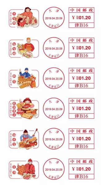 为纪念天津特色的小吃,天津邮政部门特推出“舌尖上的天津”彩色邮资机戳,4月20日将在天津站邮政局为广大邮迷加盖。