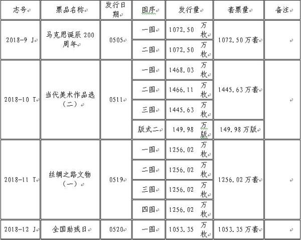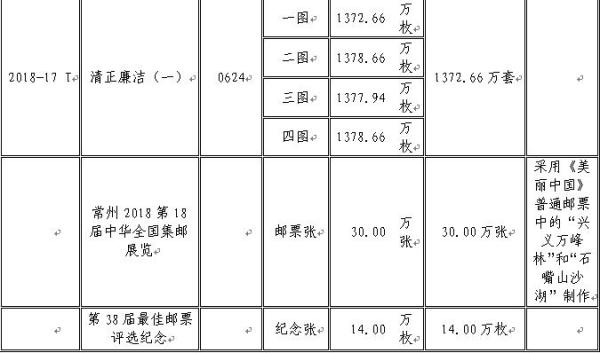 中国邮政集团公司关于公布2018年5至6月纪特邮票发行量的通告