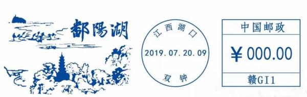 活动仪式上,九江市委与江西省邮政分公司相关领导共同为《鄱阳湖》特种邮票原地首发揭幕。活动现场设置了《鄱阳湖》特种邮票首发临时邮局,提供《鄱阳湖》专题集邮品、原地首日封的售卖和“石钟山”“鞋山”“鄱阳湖大桥”等原地风景戳记加盖服务。首发活动现场氛围十分热烈,来自全国各地的集藏爱好者和市民纷纷来到活动现场购买纪念邮品、加盖纪念戳记、制作个性化邮品、在主题墙前拍照留念。为配合首发活动的开展,九江市邮政分公司还特别申请制作了九江首枚邮资机宣传戳《鄱阳湖》(见图)。