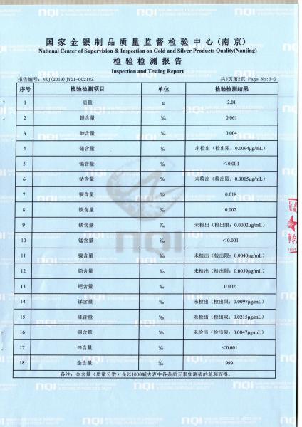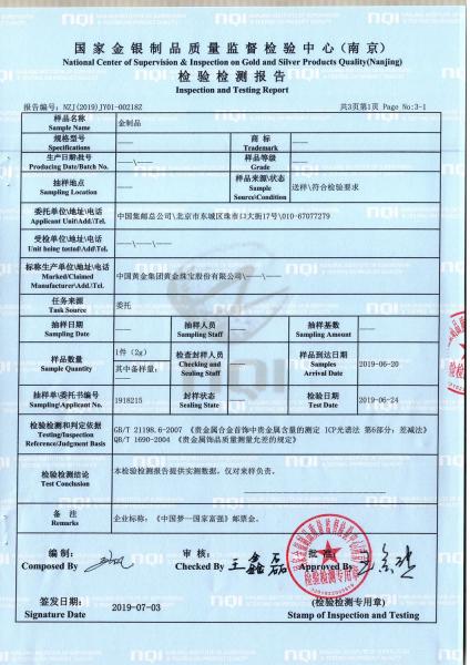 《中国梦——国家富强》邮票金检测报告