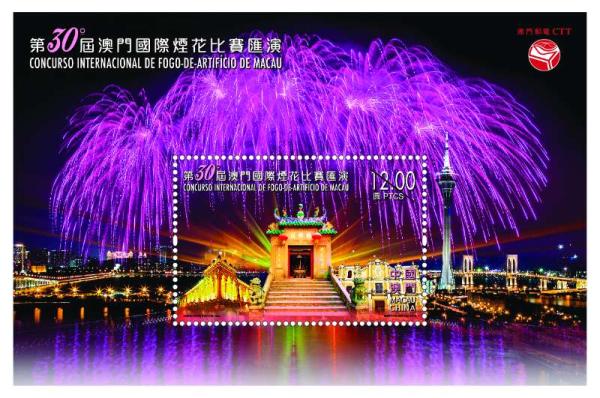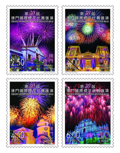 为庆祝澳门回归祖国20周年,澳门将于今年9月至“十一”黄金周举行第三十届澳门国际烟花比赛汇演。澳门邮政局于8月30日特发行《第30届澳门国际烟花比赛汇演》邮票1套4枚,同时发行小型张1枚。
