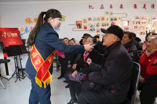 健康讲座,邮政工作人员和老人互动。王圆圆 摄