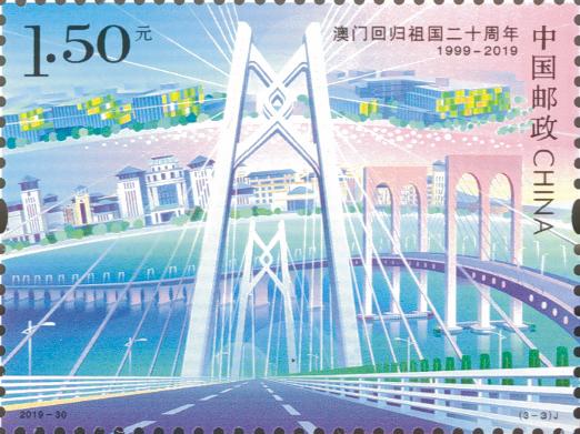 中国邮政定于2019年12月20日发行《澳门回归祖国二十周年》纪念邮票1套3枚。详情如下:
