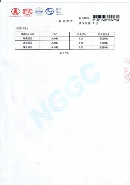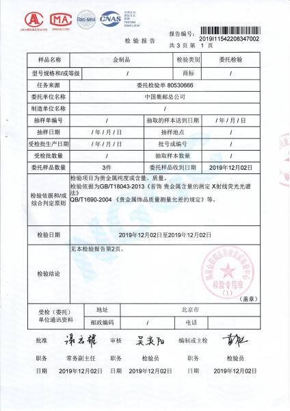 >《金鼠聚财》2020鼠年生肖贺岁邮品(四方连纪念金、小版纪念金、大版纪念金)质检报告