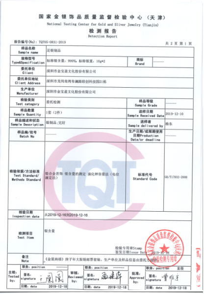>首页>集邮信息>产品证书(历史)>《金鼠纳福》庚子年大版银邮票套装检测报告