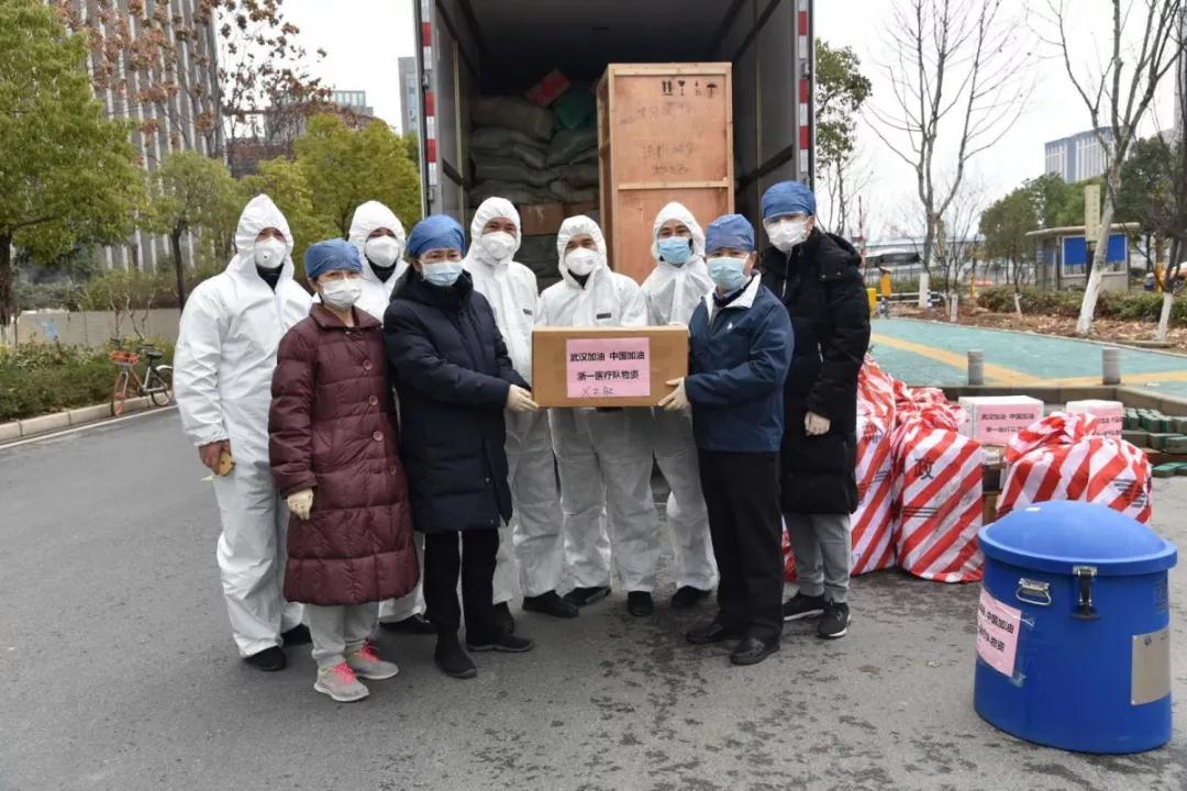 2月6日下午,一辆邮车开进了浙江大学医学院附属第一医院,停在了17号楼前,邮政和医院双方的工作人员冒着淅沥的小雨小心翼翼地将装着医疗耗材的一个个大箱子搬进车厢。浙江省邮政分公司党委书记、总经理陈清,浙大一院常务副院长裘云庆、党委副书记邵浙新均到达了现场。