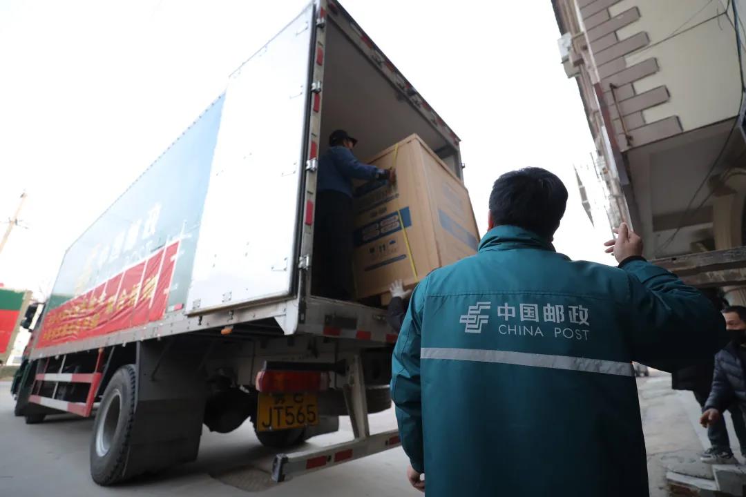 在救治工作最艰难的2月,火神山医院和雷神山医院日夜抢救病患。病房外,无数邮政员工日夜穿梭在医院配送医疗物资,绿色的身影守护着生的希望。1750台平板电脑、800个平板支架、700个自动洗手套装、610部对讲机、600个体温计……2月4日,武汉邮政接到小米公司捐赠物资的信息,立刻紧急调用了各类车辆,大到8吨邮车、4.2米厢式车,小到面包车,甚至小拖车。从小米公司到火神山医院单程需要50公里,邮车进不去,心急如焚的邮政员工们就用小拖车一趟趟拉、用肩膀一箱箱扛、用胳膊一袋袋抱,最长的一次步行是在泥泞中走了3公里……