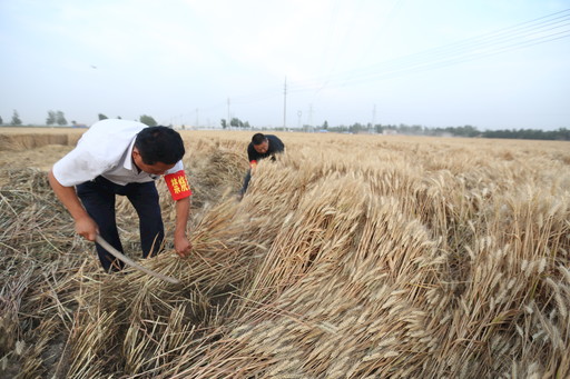 6月6日,中国小麦第一县、“豫北粮仓”河南省滑县枣村乡大屯村一方金灿灿的麦田里,邮储银行滑县支行派驻该村“第一书记”陈红利带领30多名党员志愿者组成的“割麦队”,全力帮助“三留守”农户和缺乏劳动力的困难户、军烈属等收割倒伏的麦子。