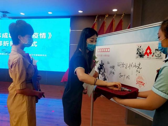 向抗疫英雄赠送特殊邮折。新甘肃·甘肃日报记者齐兴福 摄