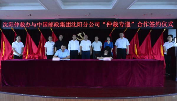经过近一个月洽谈和沟通,沈阳邮政民商事仲裁寄递项目正式启动。7月8日,沈阳市分公司与沈阳仲裁委员会办公室(沈阳市劳动人事争议仲裁院)举行“仲裁专递”服务签约仪式,省司法厅公共法律服务处处长邹华国、副处长荣丹、沈阳仲裁办党组书记、主任邱立民、市邮政管理局局长张量、副局长孔波及市分公司领导出席。沈阳仲裁办副主任王雁雁与市分公司副总经理刘晓峰分别代表双方单位签署并交换合作协议。