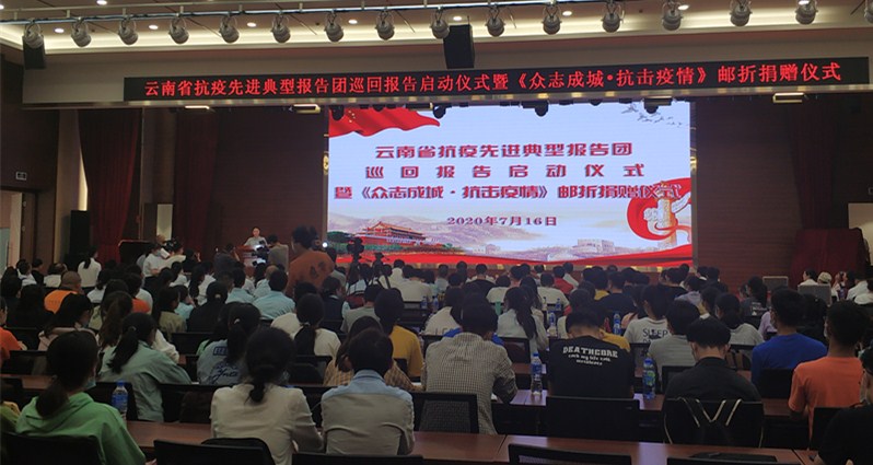 2020年7月16日,云南省抗疫先进典型报告团巡回报告启动仪式暨《众志成城抗击疫情》邮折捐赠仪式在昆明医科大学第二附属医院举行。