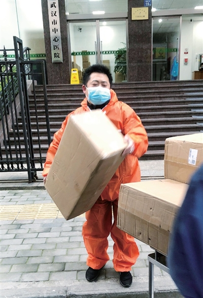 抗疫关头,徐龙为医院投递防疫物资。