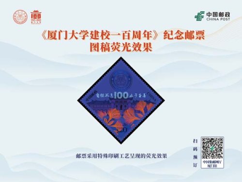 中国邮政定于2021年4月6日发行《厦门大学建校一百周年》纪念邮票一套1枚,邮票面值为1.20元。