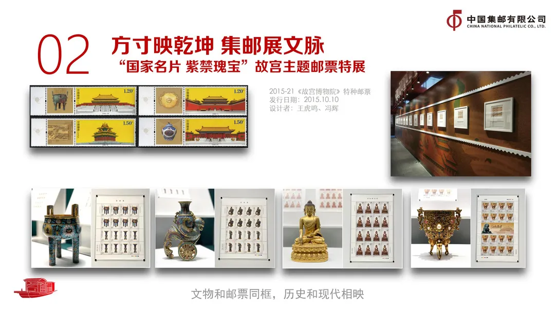 二是知史爱国,从中华优秀传统文化中萃取精华,以邮为媒讲好中国故事。习总书记曾指出,如果没有中华五千年文明,哪里有什么中国特色?如果不是中国特色,哪有我们今天这么成功的中国特色社会主义道路?最近的故宫邮票特展就是要把中华文化中最璀璨亮丽的部分通过展览呈现出来。这是集邮人的骄傲也是集邮人的责任。