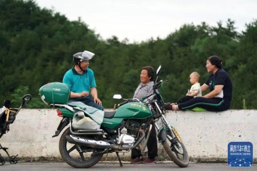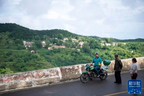 在山西省壶关县大峡谷镇壶陵水村,赵月芳在送件的路上(7月13日摄)。新华社记者 詹彦 摄