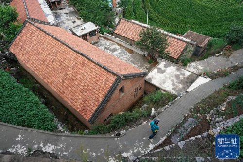 在山西省壶关县大峡谷镇鹅屋村,赵月芳走在为村民送件的路上(7月14日摄)。新华社记者 杨晨光 摄