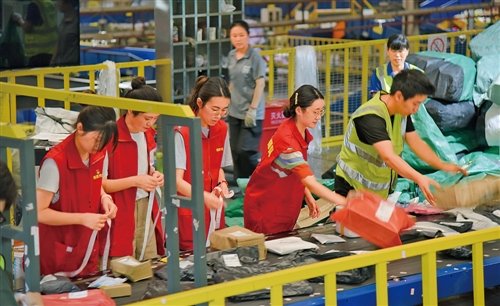 成都邮区中心组织19名青年员工深入基层一线,参与大运会邮件安检工作。