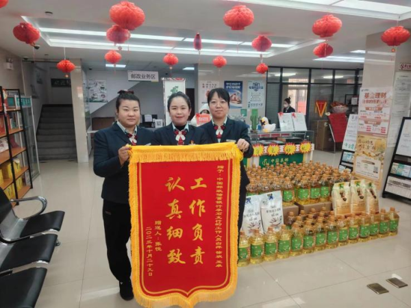 跨赛期间,一位客户拿着锦旗来到李石支局,“认真细致,工作负责”8个字,承载的是客户对邮政优质、热情服务的认可,更是对支局人员工作的肯定。