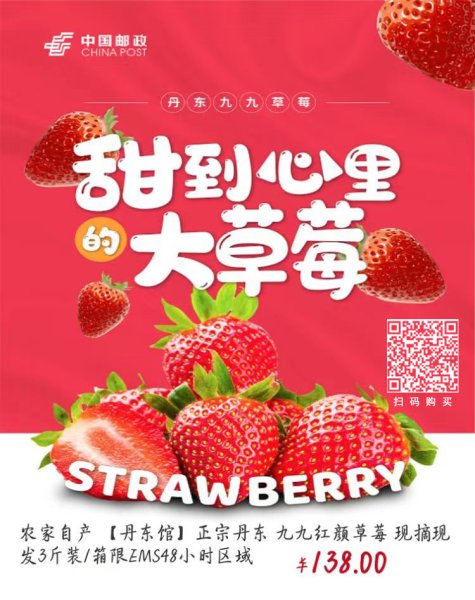 “丹东草莓”学名“红颜”草莓,1999年引入丹东种植,因此又被称为“九九”草莓。正宗的“丹东草莓”色泽鲜亮,圆润无毛刺,果籽排布均匀,自带浓郁的果香味;吃起来,汁水丰盈,口感软甜、入口即化。