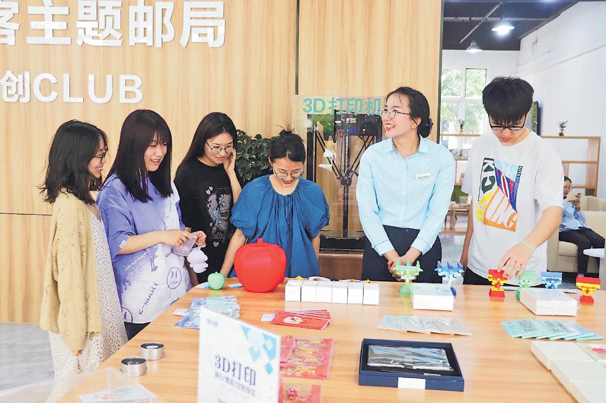 常熟理工学院学生在校园创客主题邮局参观、咨询。