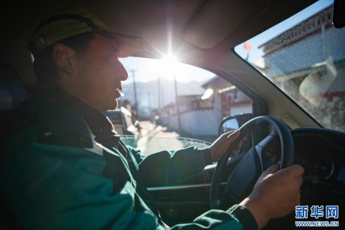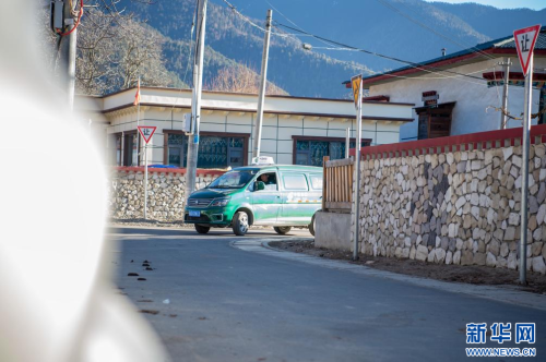 1月19日,西藏林芝市“邮快合作”新配备的邮递车穿行在乡村小巷。