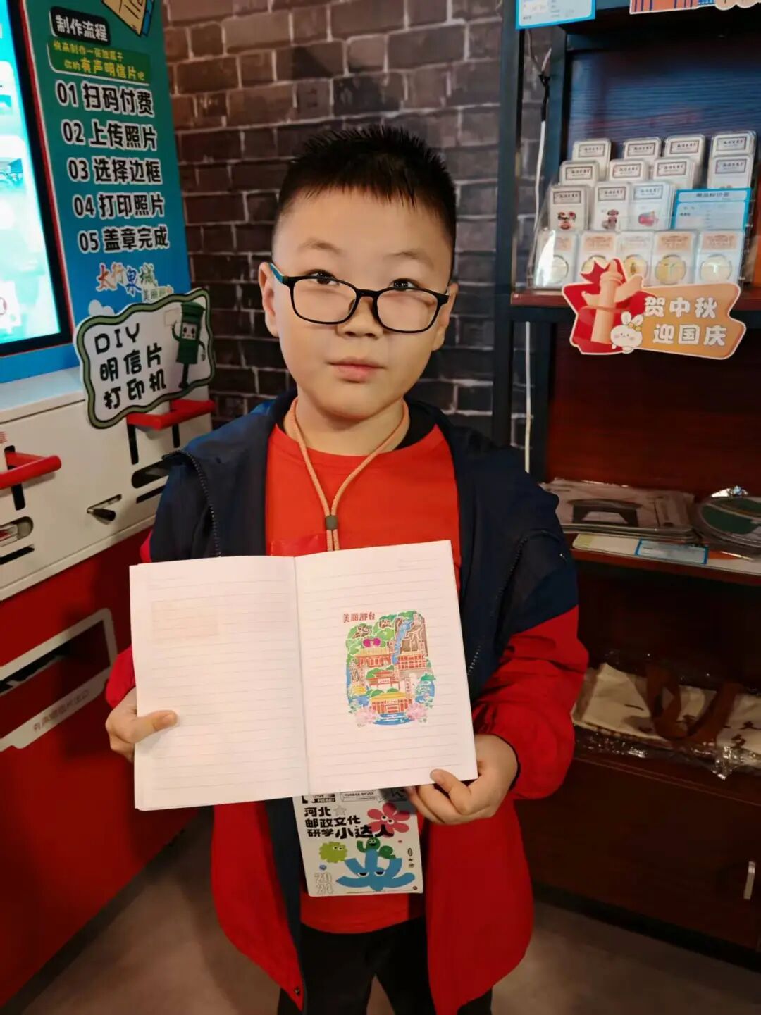 在抗大主题邮局,小讲解员武佳澍自豪地介绍,《河北省第九届旅发大会纪念封》《纪念邮折》等特色邮品。在“我是超级营业员”体验环节,孩子们轮流上岗,介绍明信片、体验集戳乐趣,并将寄托祝福的明信片投入邮筒,完成有意义的寄递实践。